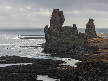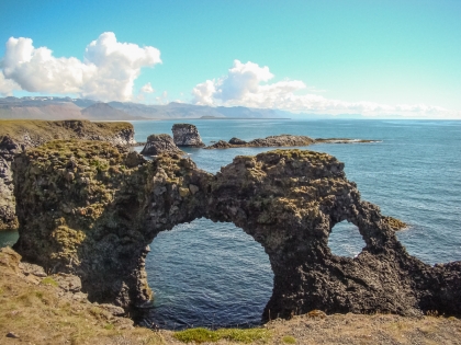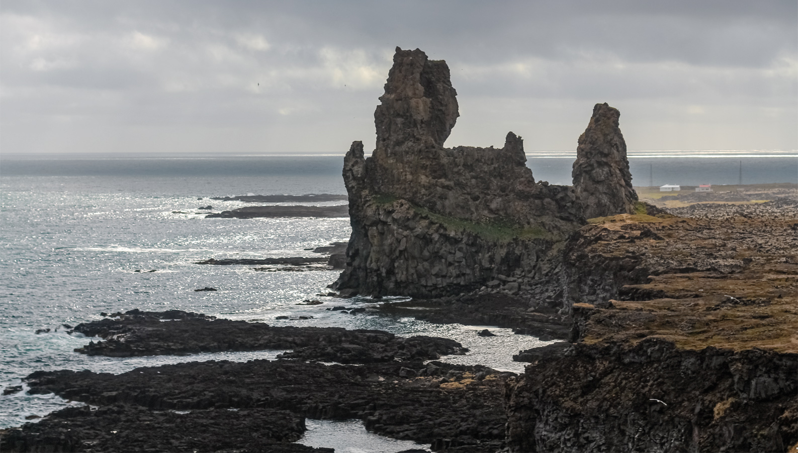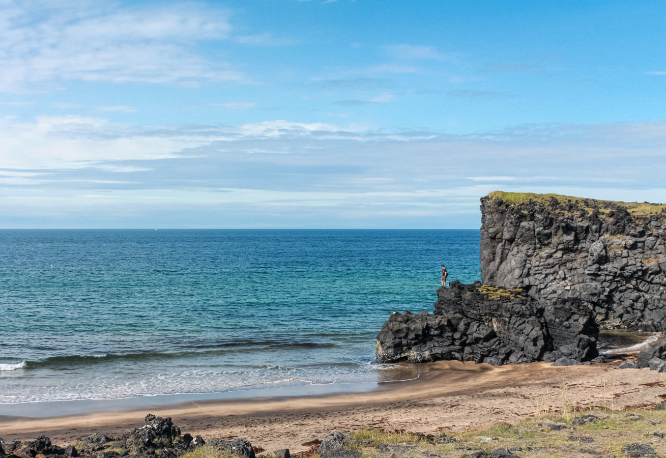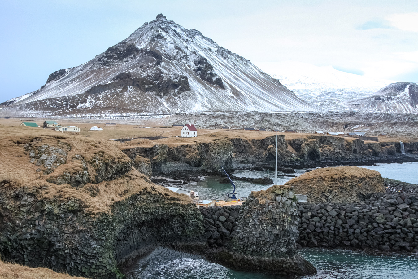 С 2001 года Снайфедльснес – один из 4 национальных парков в Исландии. Ледник поднимается на высоту 1446 метров и занимает площадь всего в 7 кв. км. Под ним находятся пещеры с гулким эхо, где обитал Бардур – великан и покровитель этих мест. А чуть дальше – удивительные прибрежные формации, филигранно свитые из базальтовых труб!